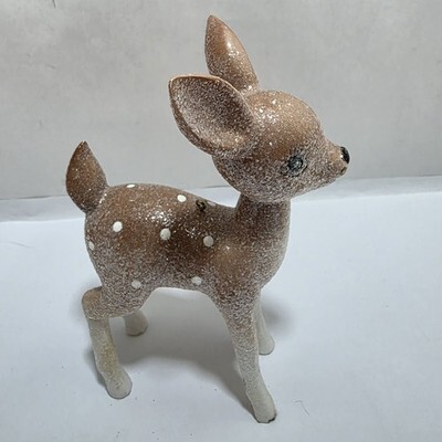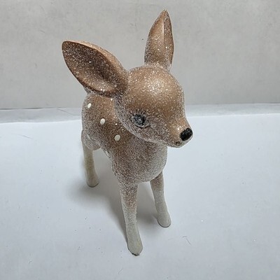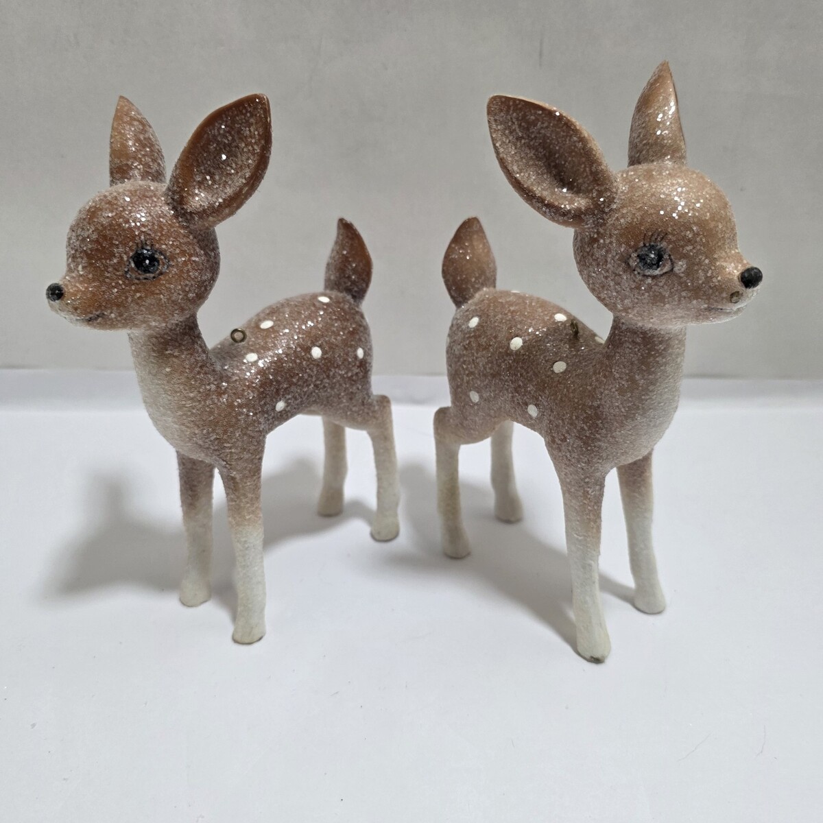 Vintage Retro Style Spotted Deer ~ Sugar Glitter~Set Of 2~ 7" Tall Ornament
