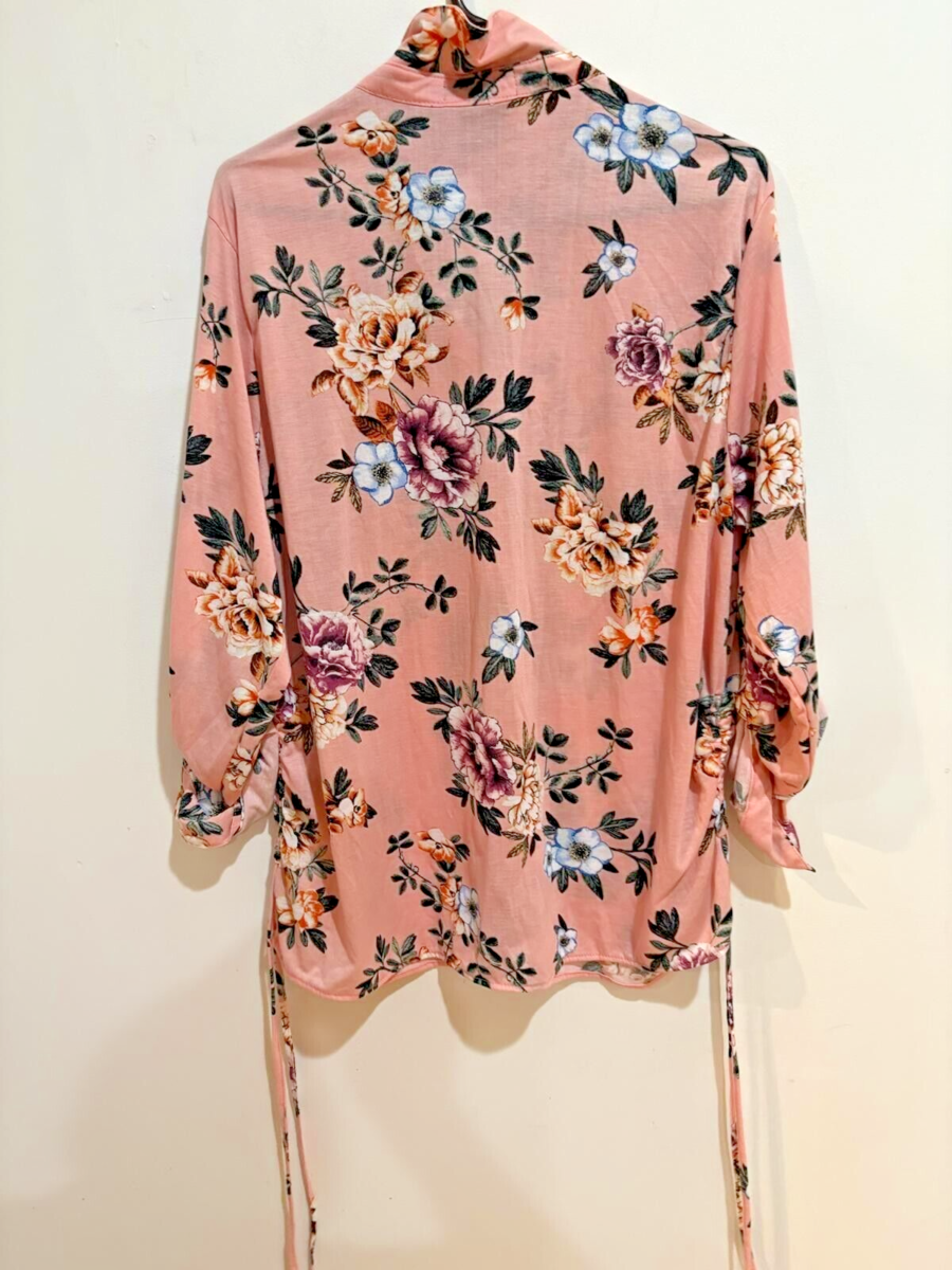 Like An Angel Women's Floral Blouse Pink Size 2X Button-Up Drawstring Sides