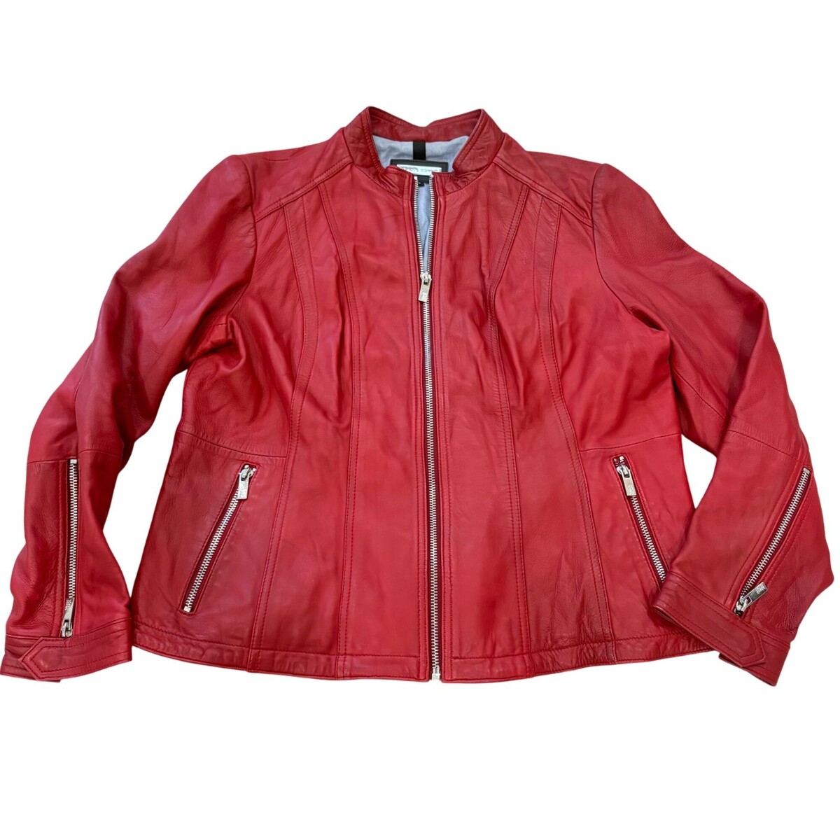 Black Rivet Womens Red Genuine Leather Zip Front Jacket 1X