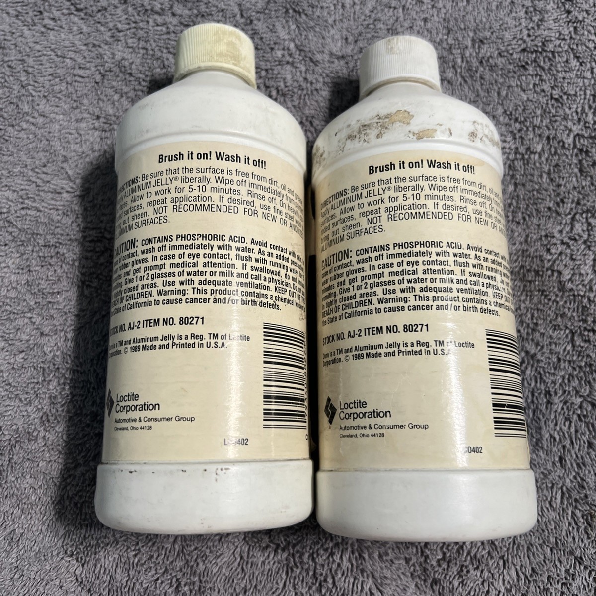 The Duro by Loctite Aluminum Jelly corrosion remover Cleaner Brightener is a 16 fluid ounce liquid surface cleaner specifically designed for aluminum surfaces. This discontinued product is effective at removing dirt, grime, and tarnish from aluminum surfaces, leaving them clean and bright. The product carries a California Prop 65 Warning due to its potential to be harmful if ingested or inhaled. It is recommended to use this cleaner with caution and to avoid contact with eyes or mucuous membranes.
