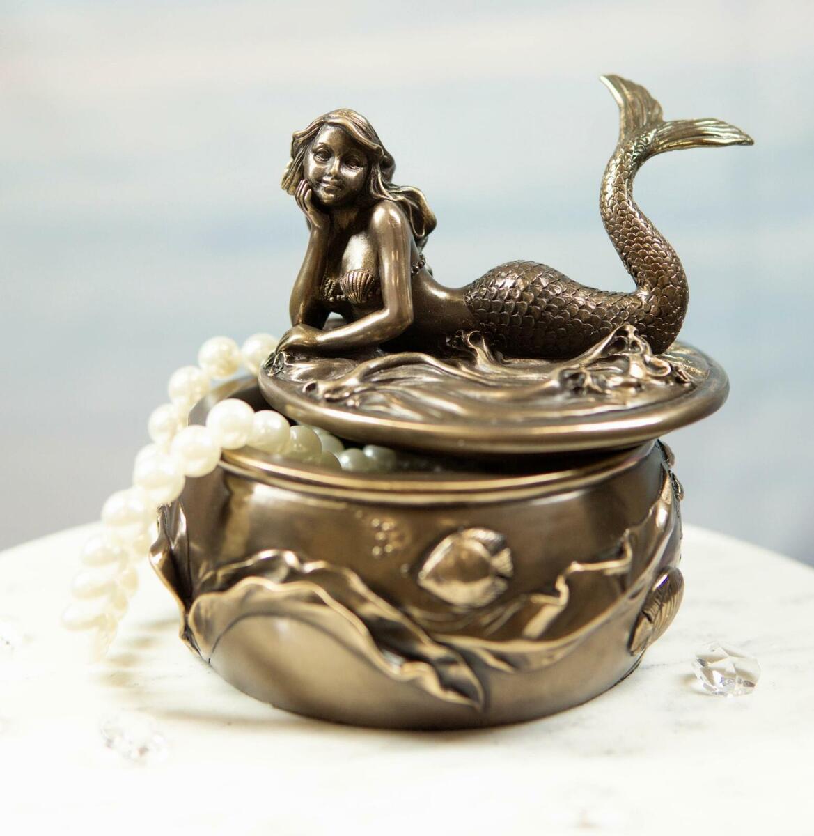 Ebros Fantasy Mermaid Resting With Under The Sea Fishes Jewelry Trinket Box