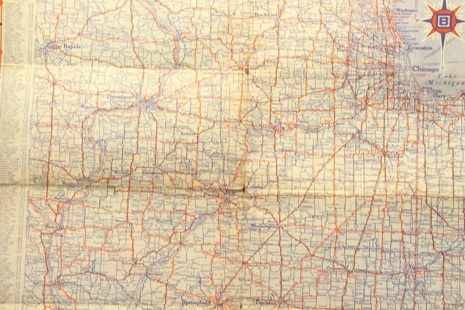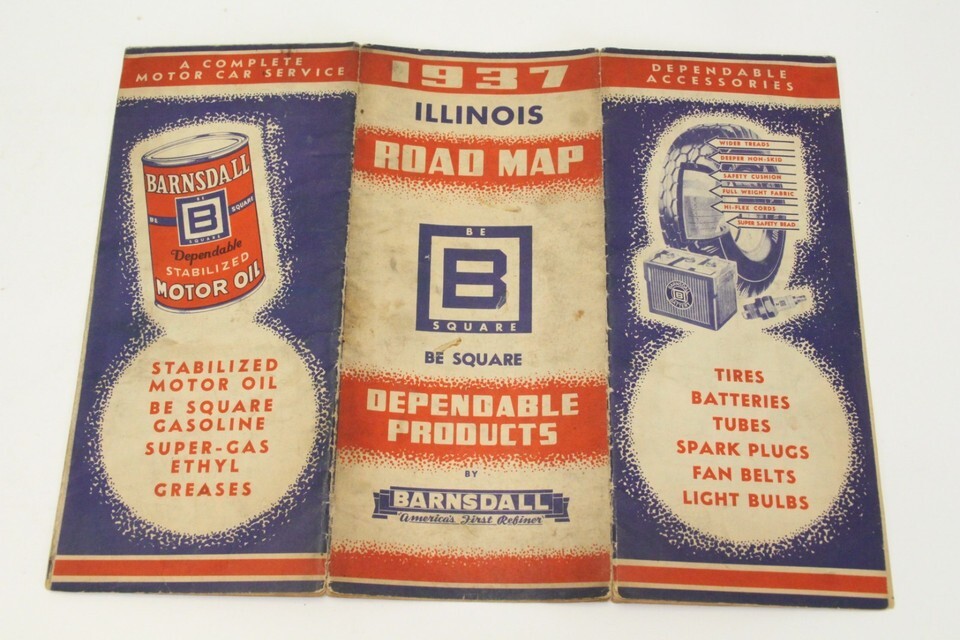 Barnsdall Square B 1937 Road Map Illinois w/Milage Chart USA Map