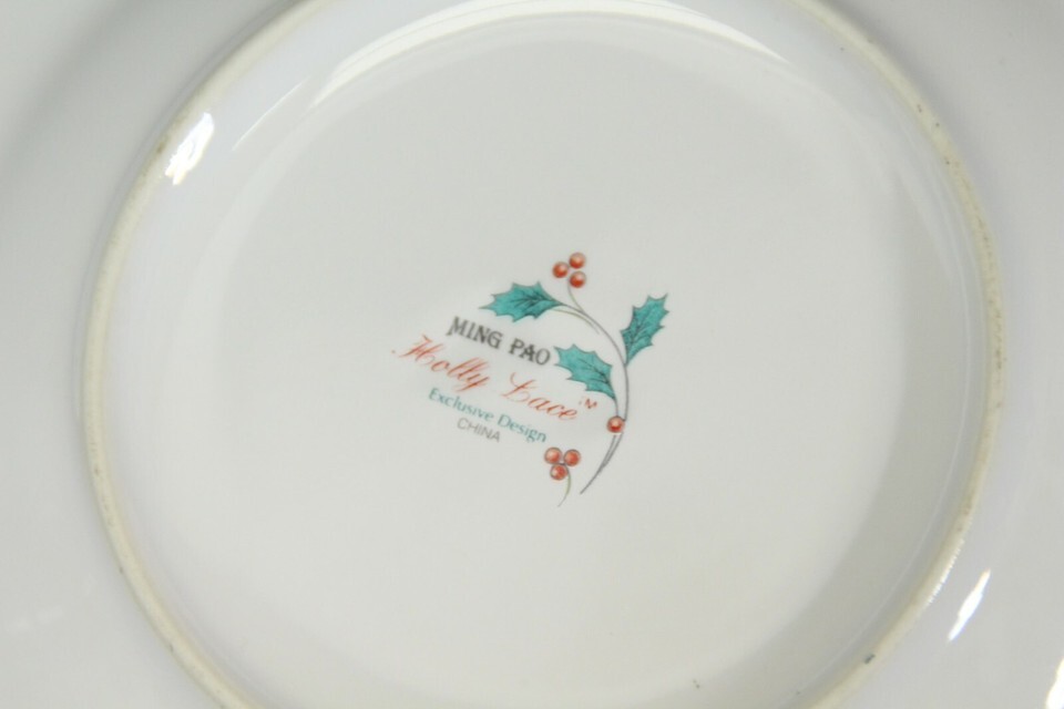 Ming Pao Holly Lace Christmas 8 Cups and 5 Saucers Lot of 13 Xmas