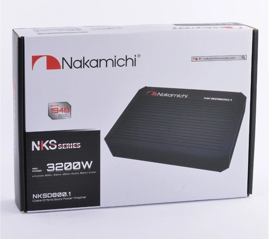 Nakamichi Class D Monoblock Amplifier 3200 Watts Max Power NKS NKSD800.1 - Black. Condition is New. Shipped with USPS Priority Mail.