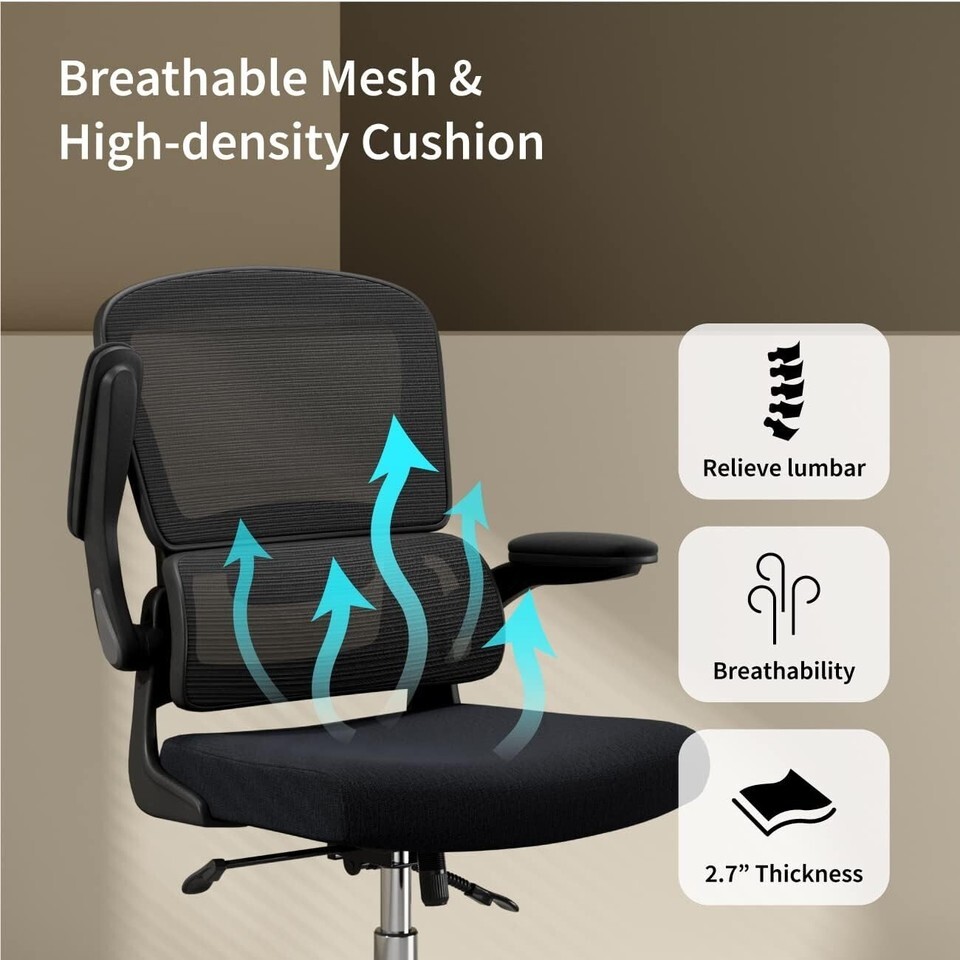 ?Space Saving?The Home office desk chair with flip-up armrests can maximize space saving and keep your room tidy and clean. Whether at home or in the office, you can flip the armrest up and put the home office chair under the desk.