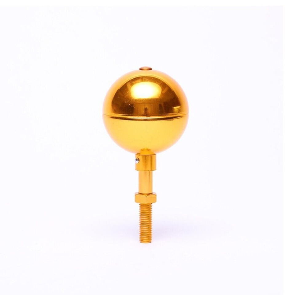 This Gold Anodized Aluminum Ball measures 3" in diameter and features 1/2" spindle threading. Anodization prevents rusting for longer use. Ball top ornaments should be selected by matching the butt (bottom) diameter of the pole with the diameter of the ball top ornament.