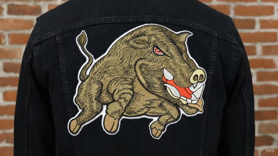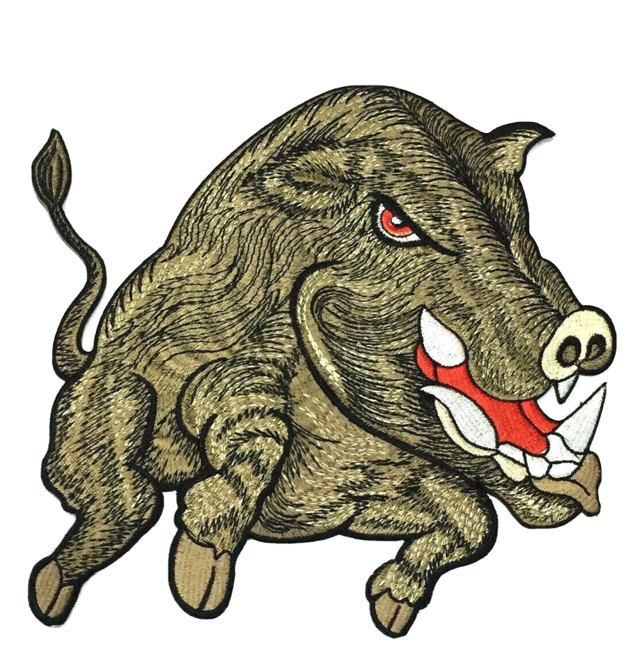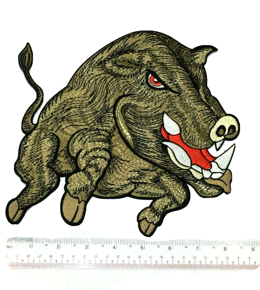 Wild Boar Razorback Hog Patch Large 9" Embroidered Applique Iron on Biker Badge