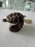 (#TNE-T-BOX-25-C) Beautifully hand crafted tagua nut figurine of a BOX TURTLE on a tagua nut slice base measures 2" long x 1-1/4" wide x 1-1/2" tall.