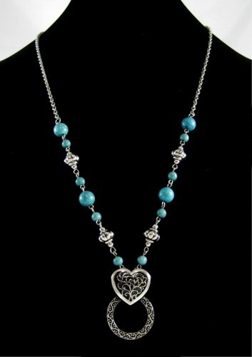 This is a pin/pendant that double as a loop for your EYEGLASSES/SUNGLASSES or BADGE HOLDERS at your place of work. Never lose them again! Designs by Heidi, using vintage jewelry parts and vintage glass buttons.
