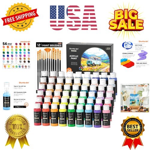 This rainbow of vibrant acrylic colors are easy to use and will work fantastically on your chosen surface of canvas, paper, fabric, or wood. The acrylic formula is designed to give your work a lasting finish. You?ll see the difference in the smooth velvety texture and bright eye-catching results. You can put away the frustrations and messiness of oil paints and simply apply this paint directly from the tube. Acrylic paint has a fast-drying quality which allows you to apply multiple layers without smudging or blending. Approved product of EN71-3 / ASTM D-4236 (which means they are safe). These paints are easy to use and sure to inspire creativity to any artist.