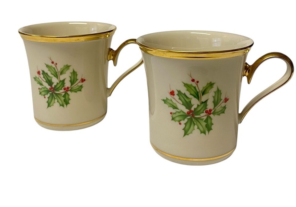 Lenox Holiday Porcelain Mugs Set Of 2 Holly and 22 similar items