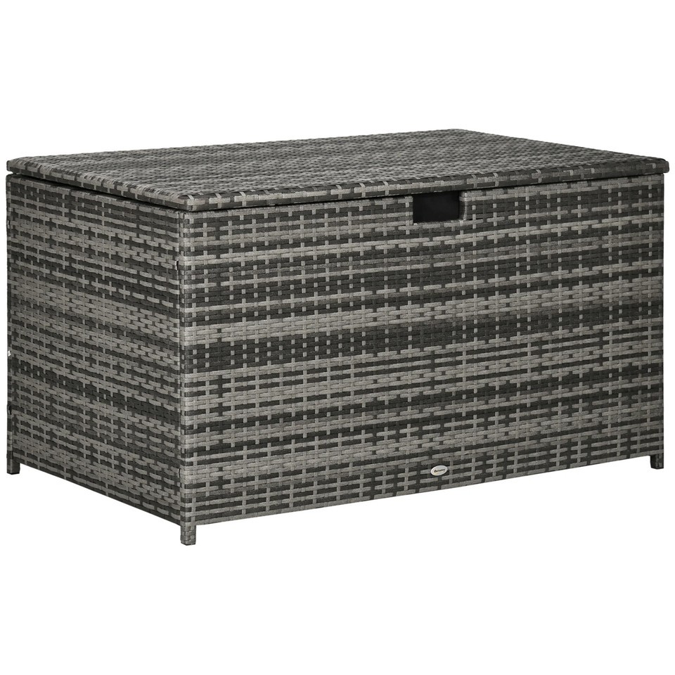 Outsunny 113 Gallon Rattan Waterproof Outdoor Deck Storage Box - Dark Gray