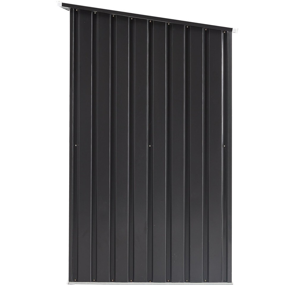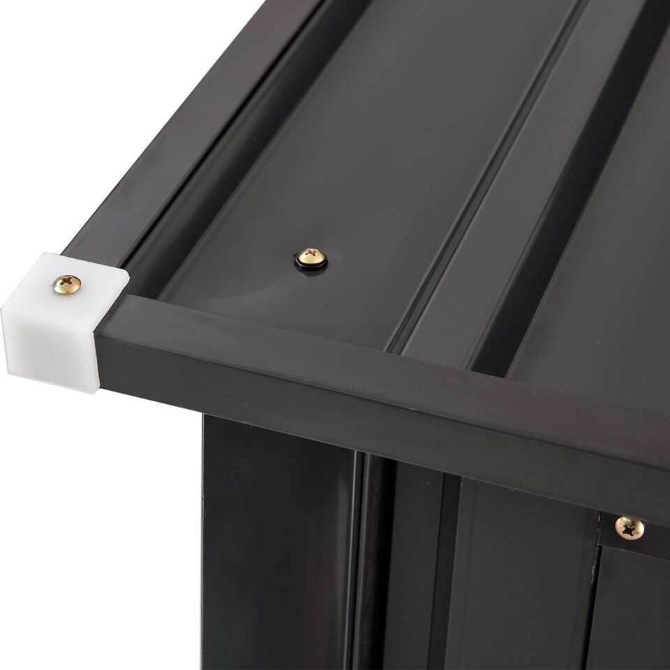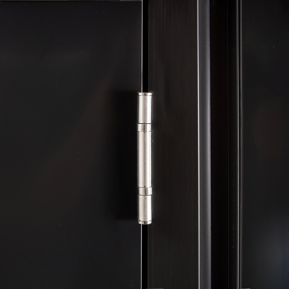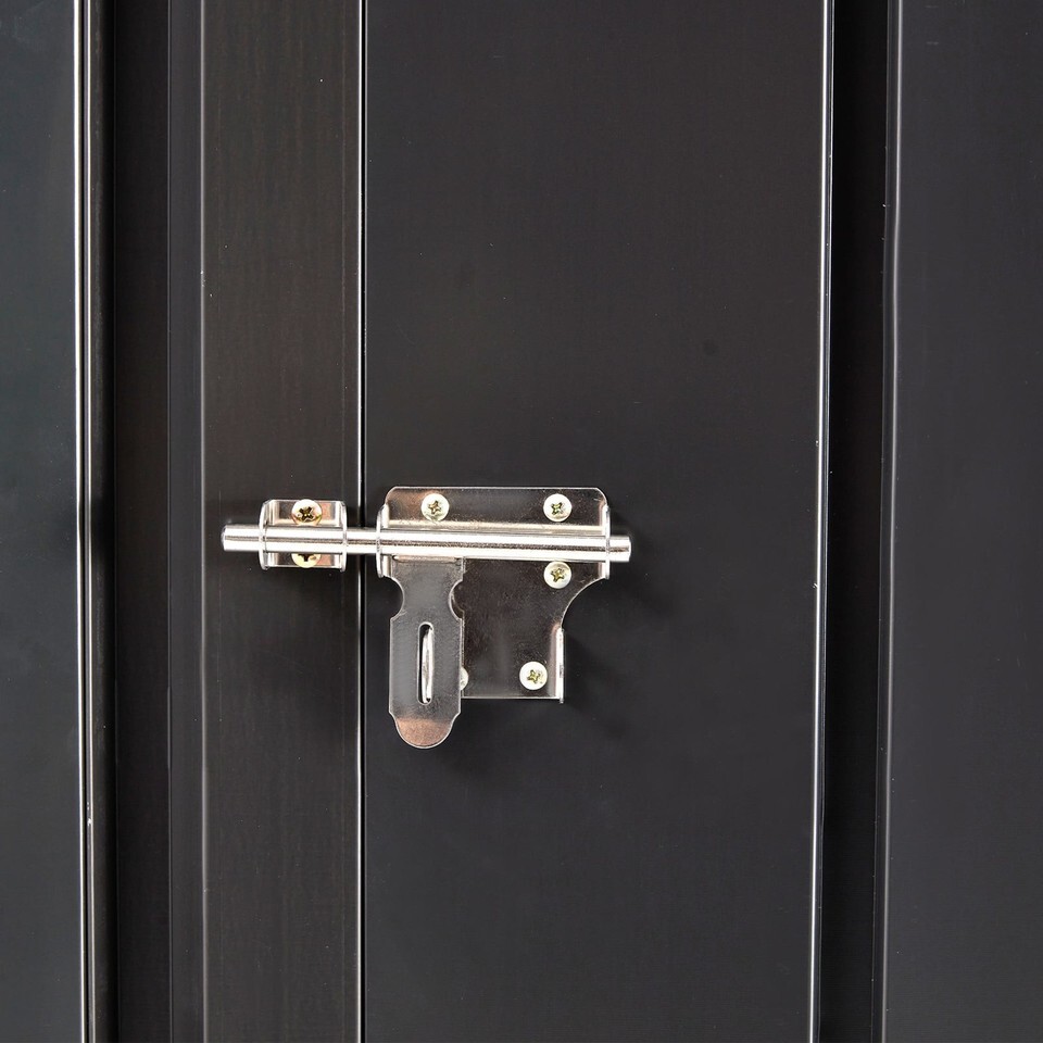 DURABLE AND WEATHER-RESISTANT: Our outdoor storage tool shed is designed with a sloping roof for quick drainage, effectively preventing rainwater from accumulating and causing rust. Made with UV and moisture-resistant materials, this storage shed offers a protected and safe environment for your valuable tools and equipment. Its sleek black tones and clean lines seamlessly blend into any yard or patio, adding an attractive architectural element to your outdoor space.