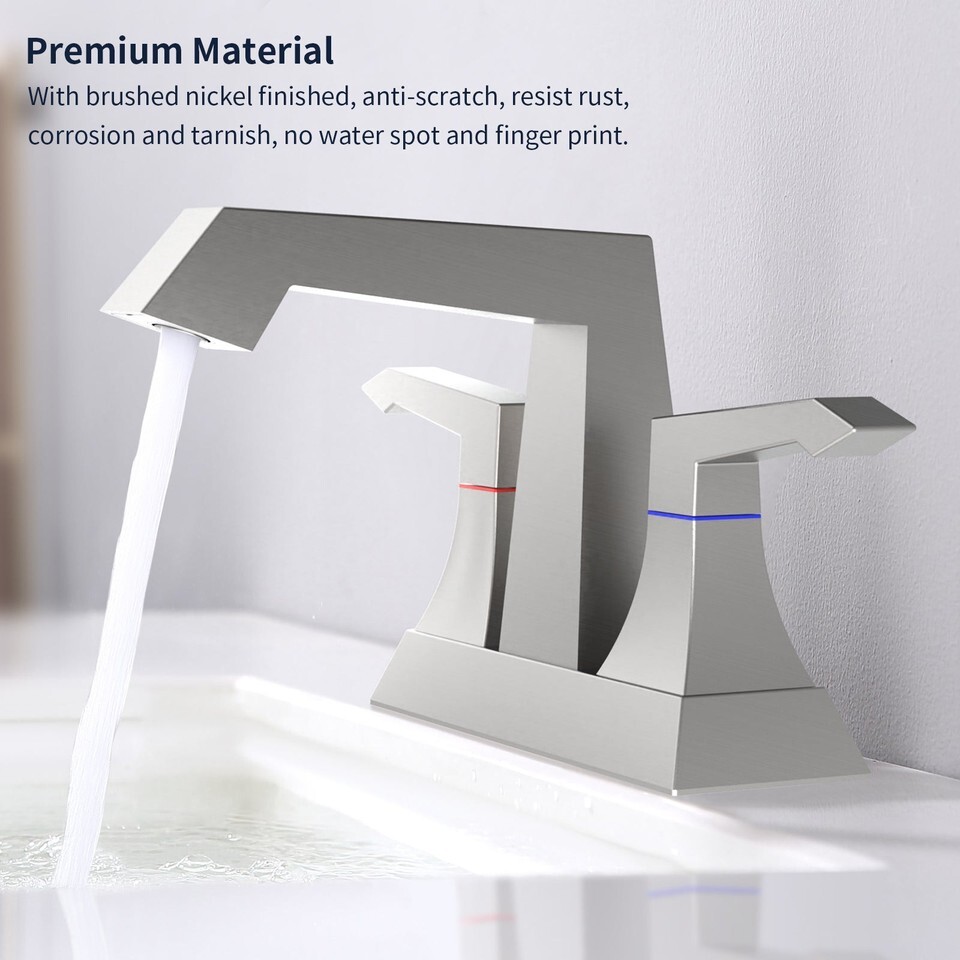 Easy to install --- This brushed nickel bathroom sink faucet is designed to fit 3-hole, 4'centerset configurations, and comes with step-by-step instruction with quick connect for easy installation.