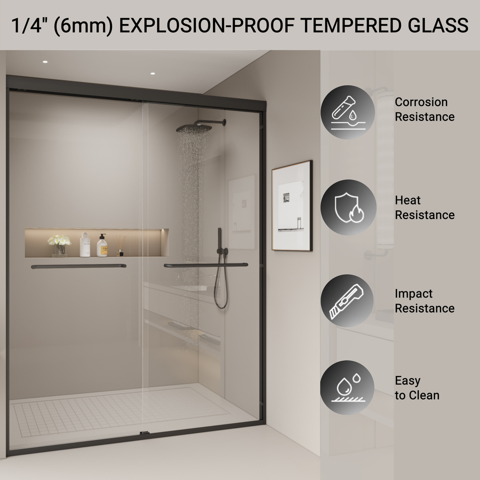 72"H x 44-48"W Matte Black Sliding Shower Door