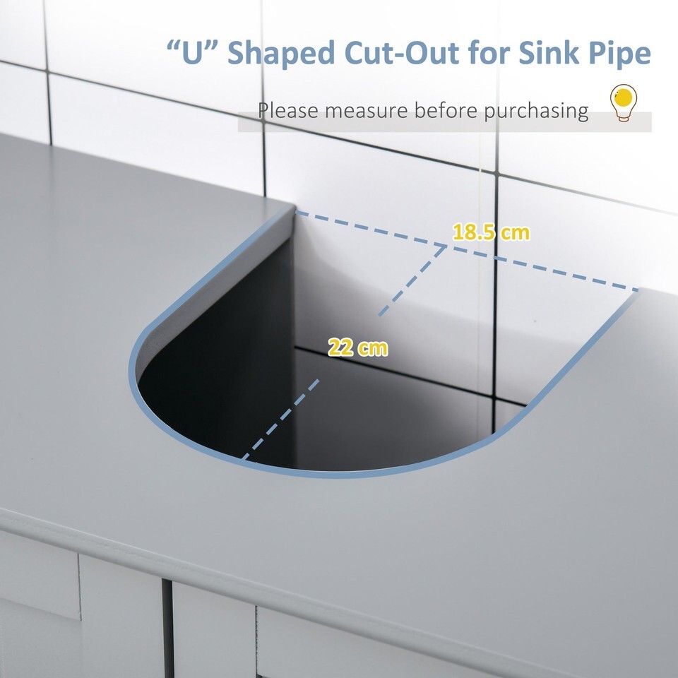 this bathroom storage cabinet is designed to sit under your open sink with its U-shaped design. Make sure to measure the sink before purchasing.