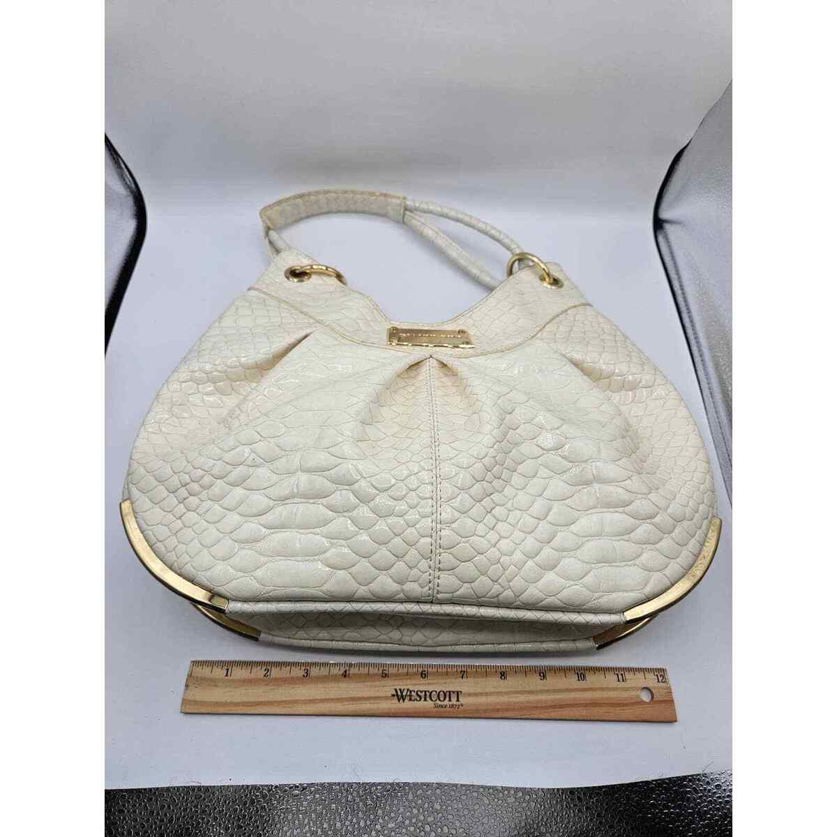 Gianni Bini White Croc Embossed Shoulder Hobo Bag Medium Gold Embellishment