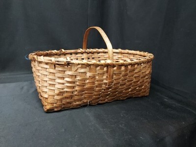 Antique 19th C. Handmade Basket Splint Bent Wood Handle Northern Vermont Estate. Shipped with USPS Ground Advantage.