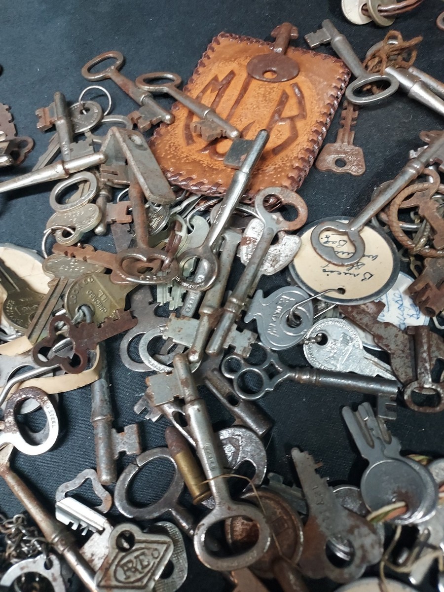 Huge Lot Antique Old Skeleton Furniture Trunk Door Cabinet Clock Safety Box Keys. Condition is Used. Shipped with USPS Ground Advantage.