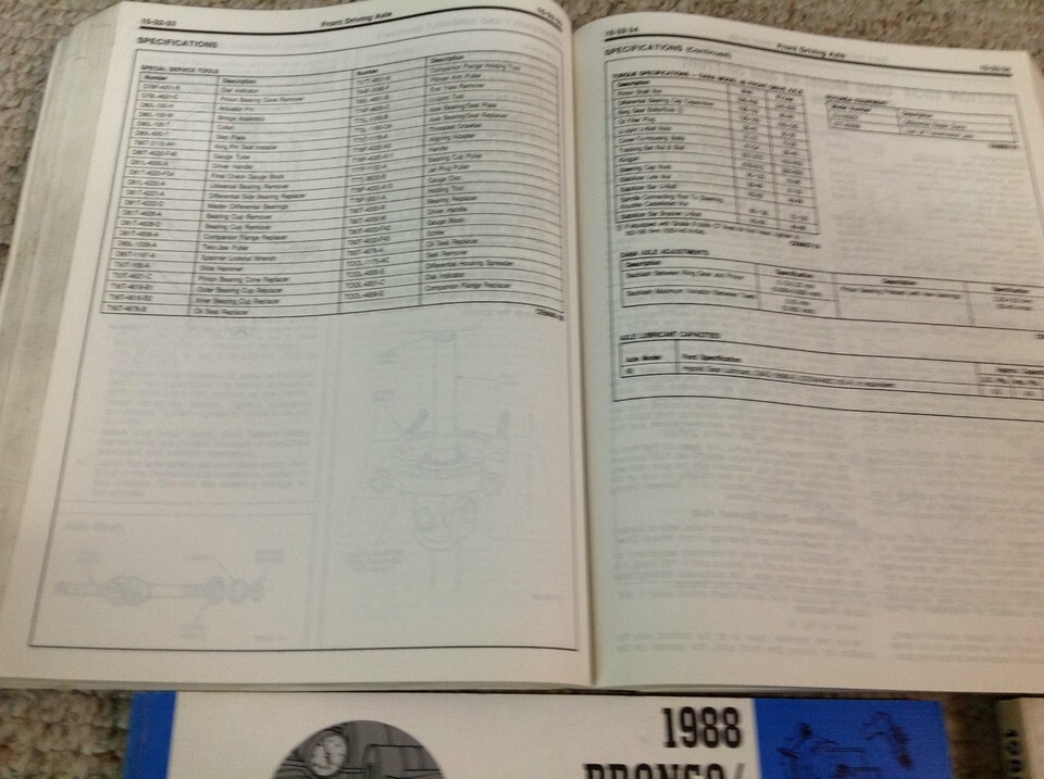 1988 Ford F-150/250/350/BRONCO/F-Super Duty/Econoline Specifications Manual