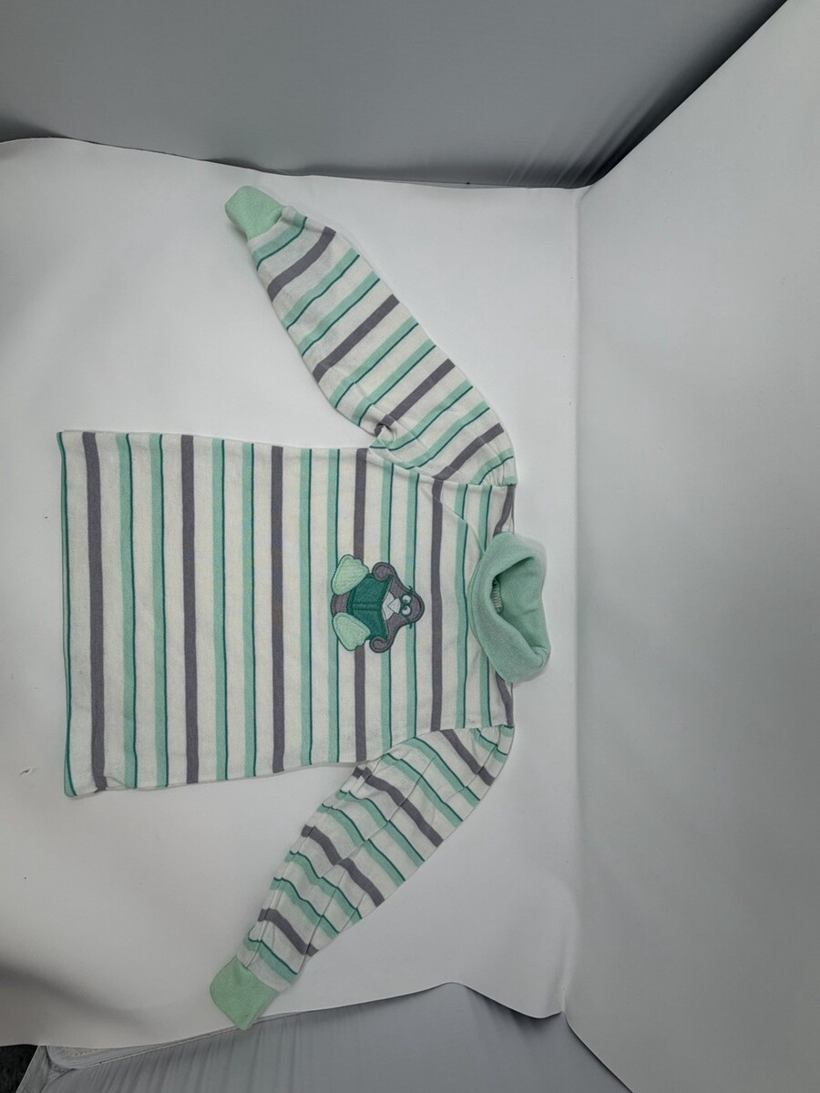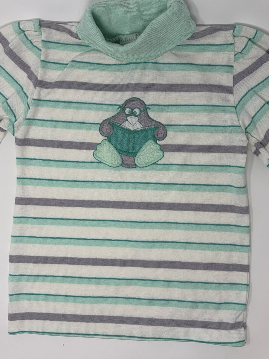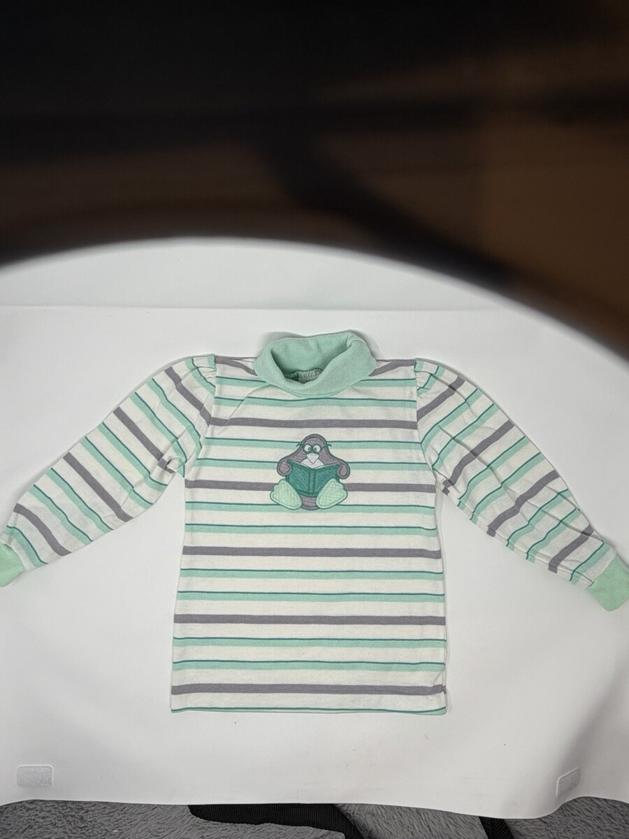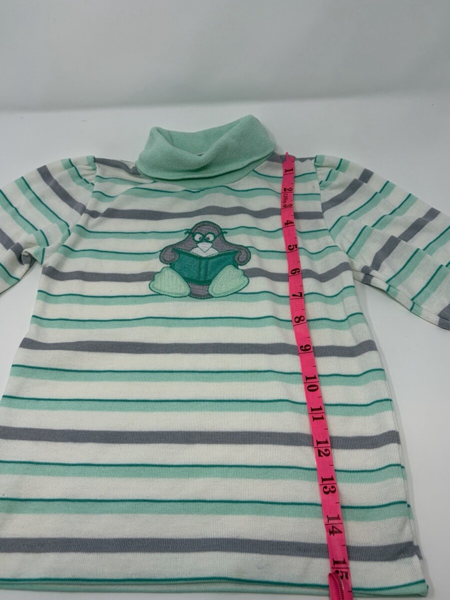 Kids Striped Turtleneck Long Sleeve Shirt Bear Book Aplique Green Gray White 5T