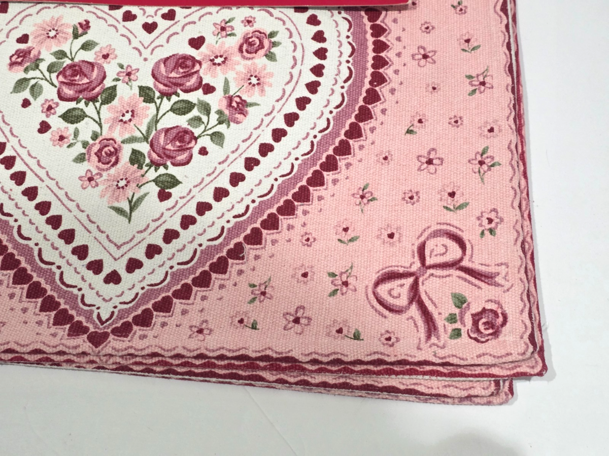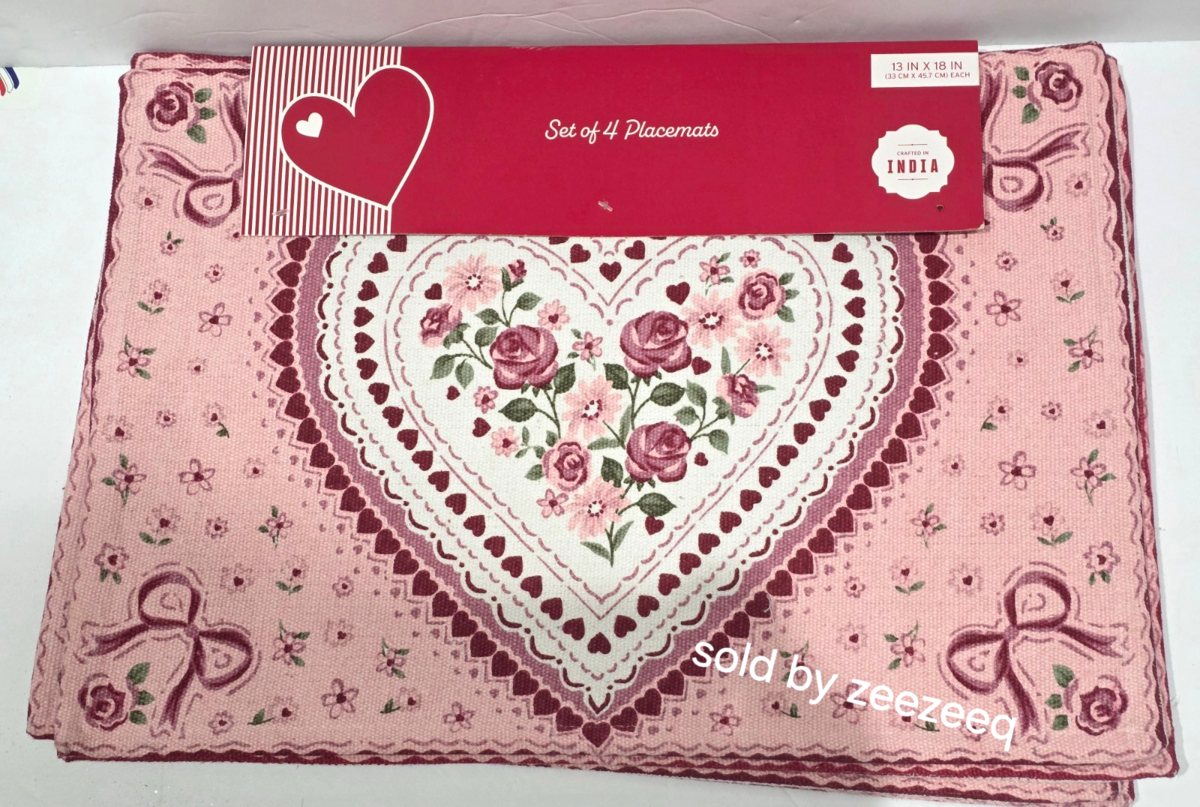 Up for sale we have these adorable placemats for your Valentines Decor. These are sooo pretty! They have a heart in the center with a rose pattern. New set of 4.