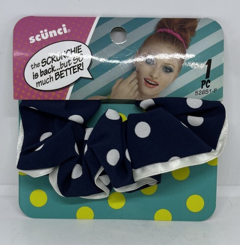 Scunci Fabric Scrunchie - 1 Piece (Navy Polka Dot). Condition is New with tags. Shipped with USPS Ground Advantage.