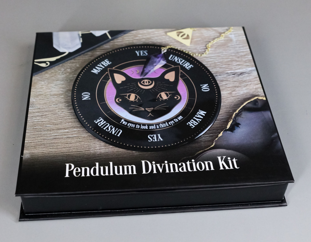 Wicca Astrology Witchcraft Mystic Mog Black Feline Cat Pendulum Divination Kit
