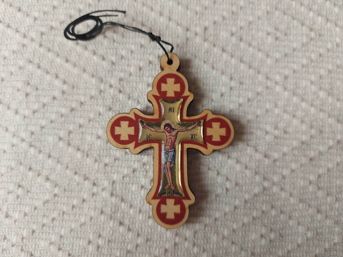 Christian Wooden Pectoral Cross Pendant Rope Cord Car Rearview Mirror