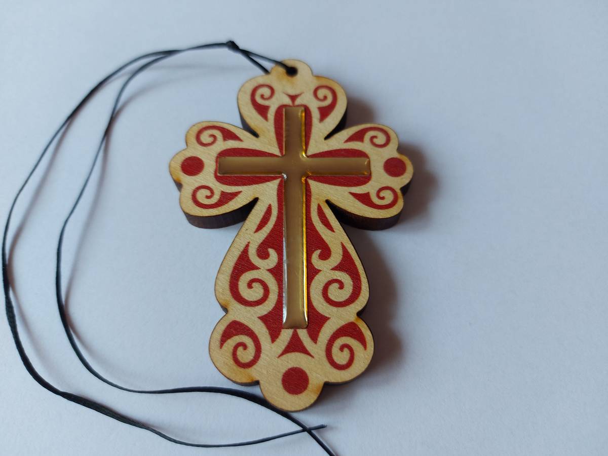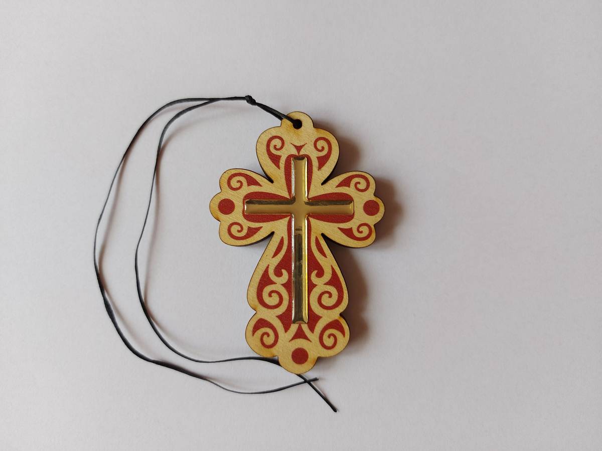 Christian Wooden Pectoral Cross Pendant Rope Cord Car Rearview Mirror