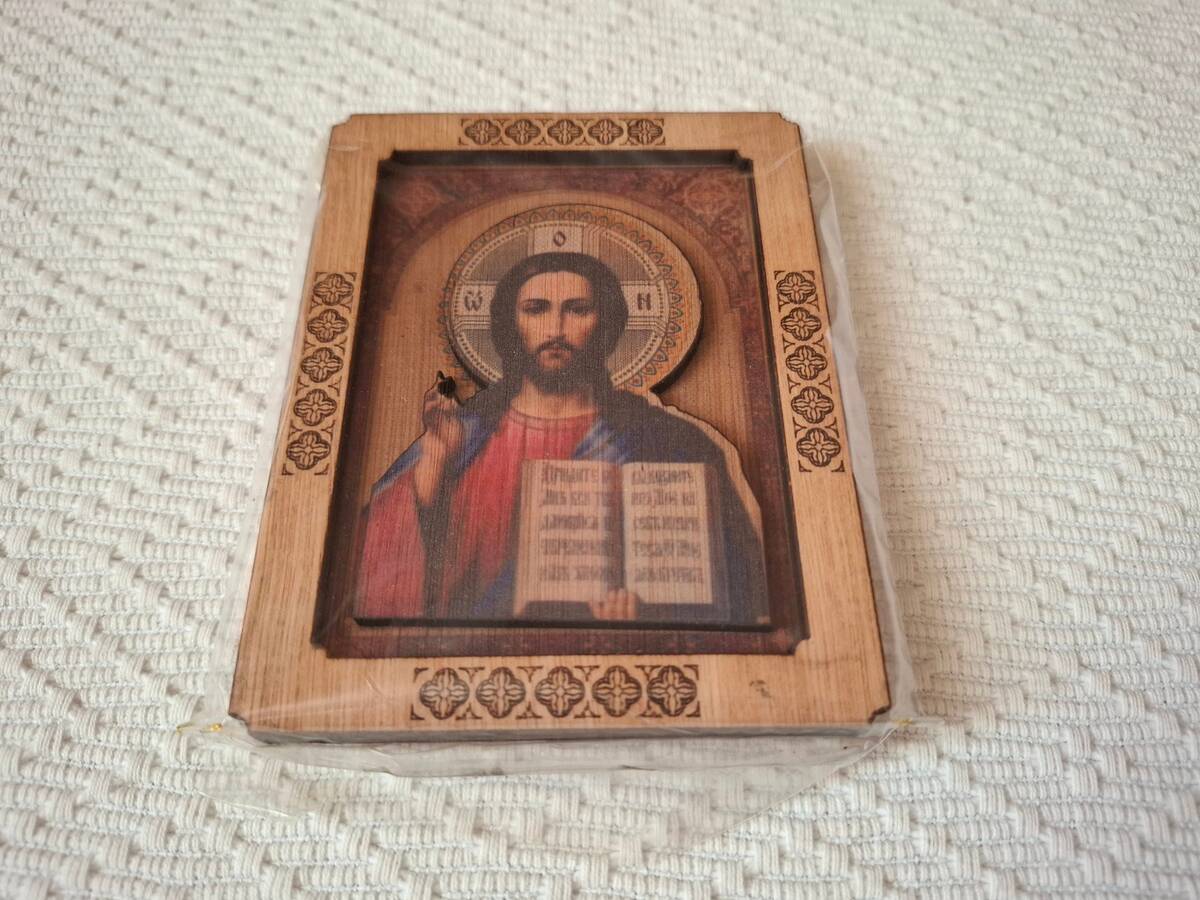 Remove the icon from the cardboard packaging, then from the bag in which the icon is located.