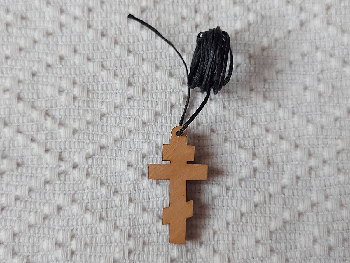 Small Russian Christian Wooden Pectoral Cross Pendant Rope Cord Car Rearview Mir