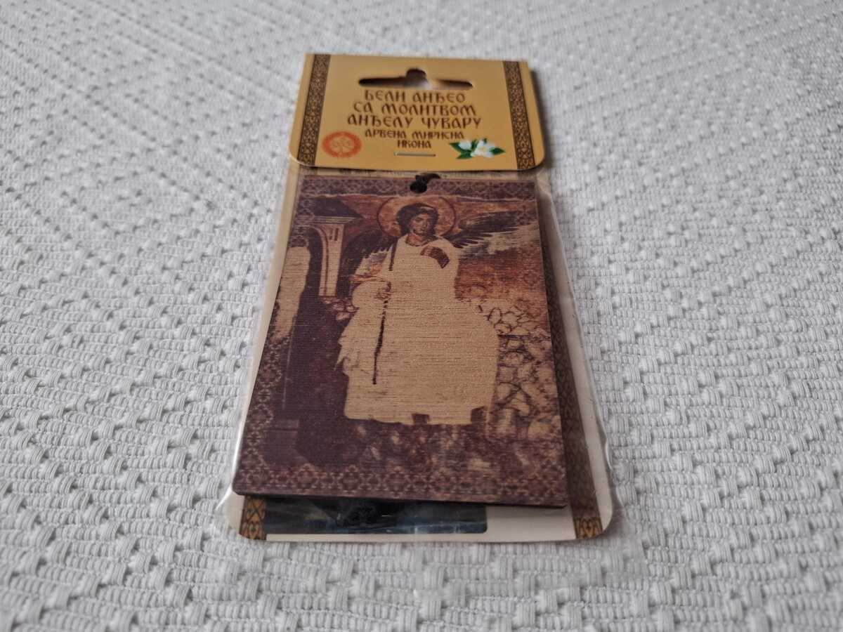 Serbian Christian Orthodox Wooden Fragrant Icon for Car Rearview Mirror White Angel