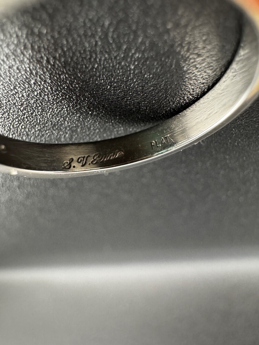 The ring is stamped ?PLAT? and ?S.V. Rudle?, confirming platinum content and designer attribution.