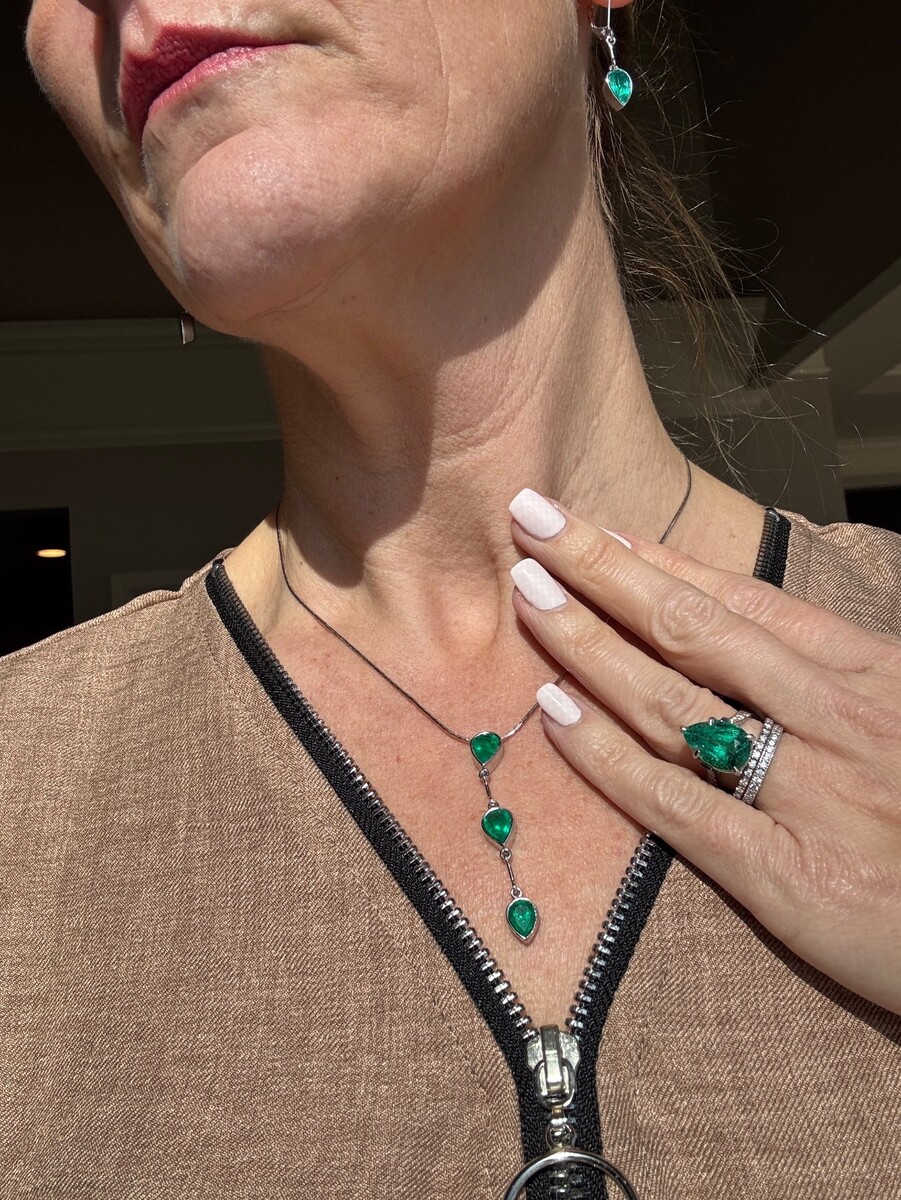 Natural Emerald 5.76ct Ring, 2.89ctw Necklace, 1.66ctw Earrings $43K Total Value