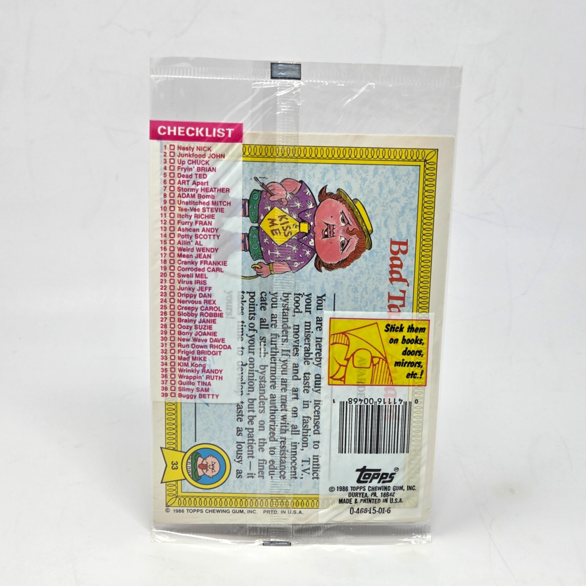 Stickers included are Nasty Nick, Ailin Al and Mad Mike