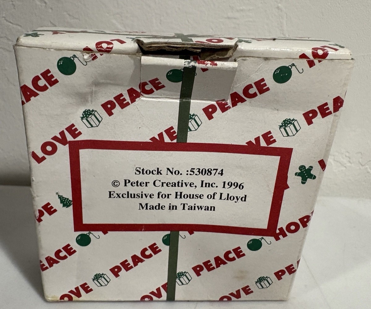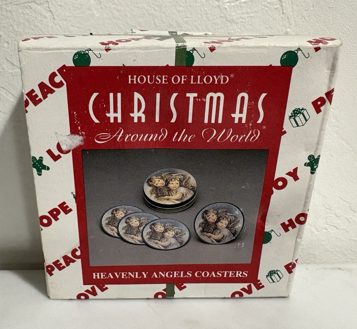 The House of Lloyd Set of 4 Christmas Around the World Angel Coasters in an Angel Tin is a collectible holiday item from 1992. Made of tin and manufactured in the United States, these coasters feature an angel design that adds a festive touch to any Christmas celebration. With a timeless appeal and no modifications made over the years, this set is a charming addition to any holiday decor collection.