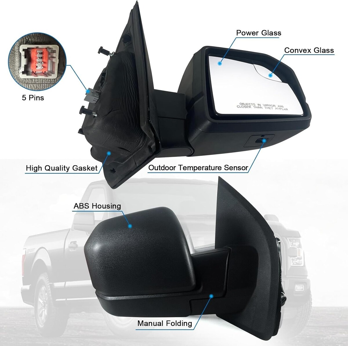 Lqito Right Passenger side Mirror Ford F150 2015-20 Replace JL34-17682-BG 5 Pins