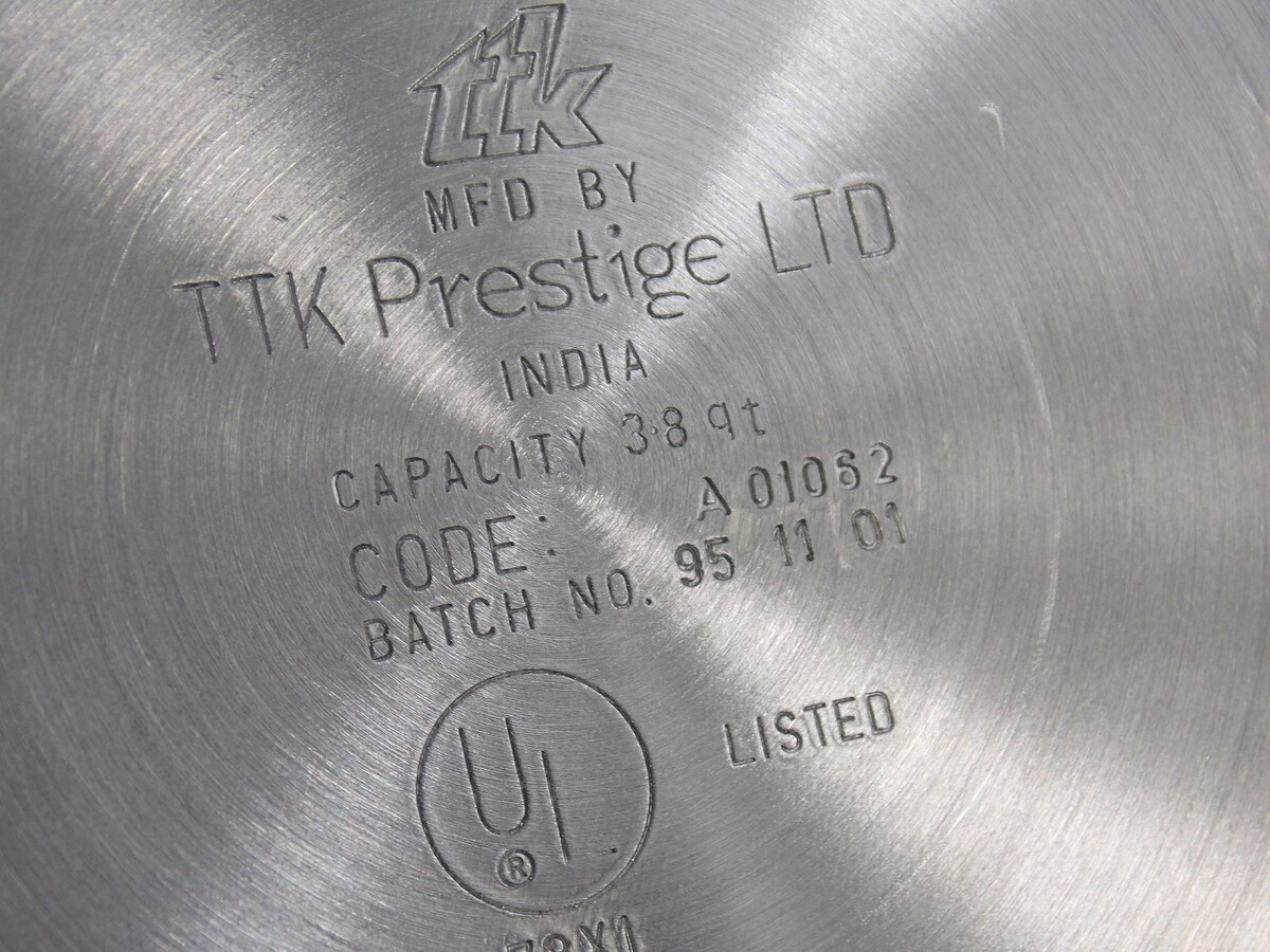 TTK Prestige LTD. Manttra 3.8 Qt. & 6.5 Qt. Pressure Cooker With Lid NO JIGGLER