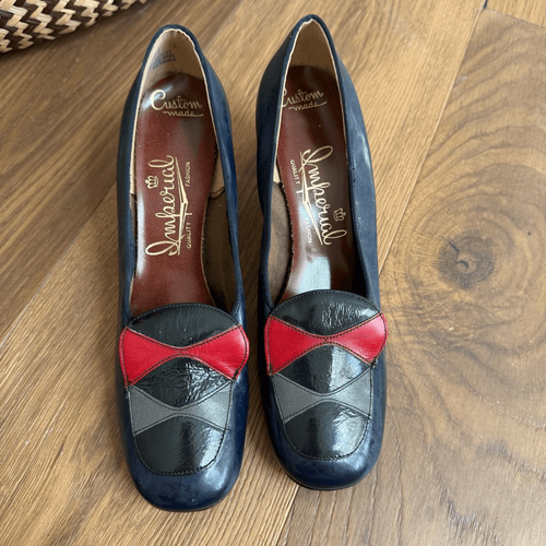 Vintage 60s 70s Imperial Block 2.5” Heel Shoes Navy Blue Black Red Grey 7