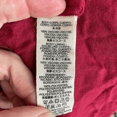 Self Lining: 100% Viscose. Embroidery: 100% Polyester.