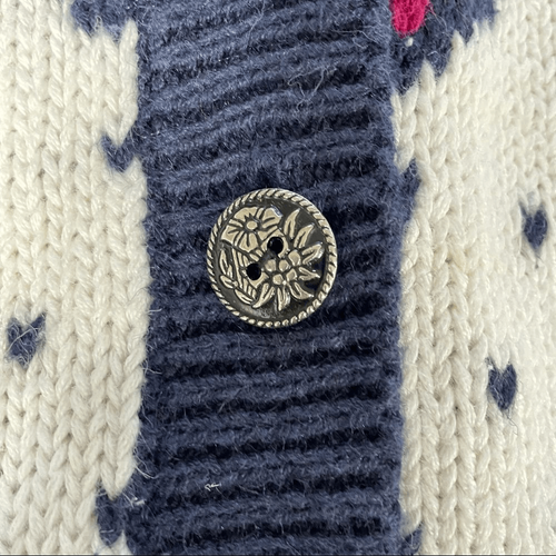 Vintage 1990s deep V-neck Cardigan with Floral and Pointelle Detail work. Deep V in the front with etched button closure. Cotton ramie blend. Measurements are approximate and taken while laying flat: 23.5 inches from shoulder to hem and 20 inches from armpit to armpit