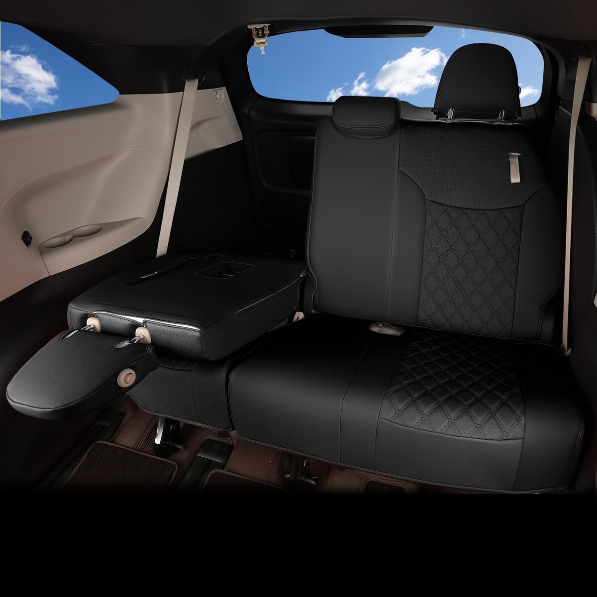 ?QUILTED DESIGN? - Both of the front seat cover and rear seat cover show rich in stereoscopic vision with a diamond-shaped quilted design and stitching decoration, simple and stylish, and it can be perfectly integrated with your car interior.