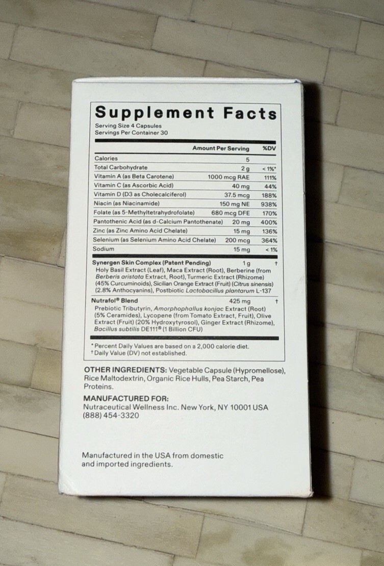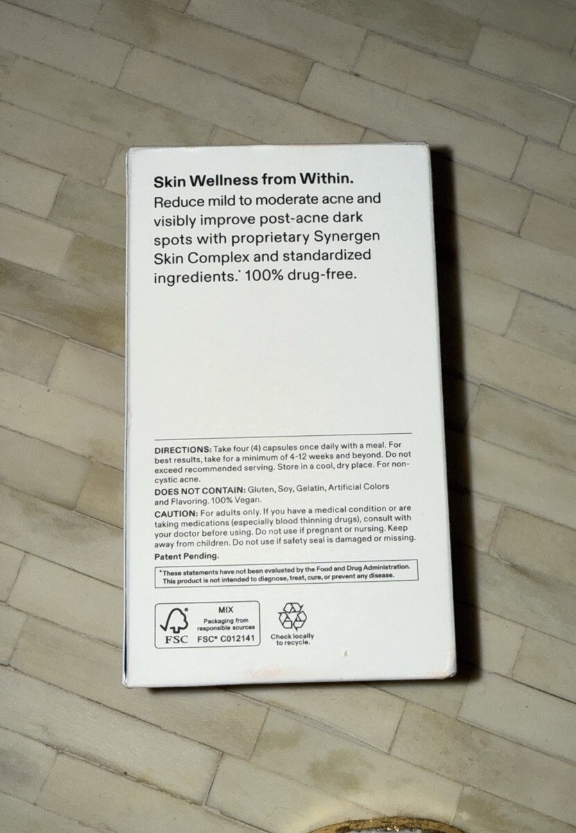 This daily supplement works from the inside out, targeting six root causes of mild to moderate acne for clearer, smoother skin. It helps reduce breakouts, blackheads, and redness while improving texture and hydration in as little as 4 weeks*. Basically, it's skin support in capsule form. *In a 12-week clinical study, participants taking Nutrafol Skin experienced significant improvement in acne. For non-cystic acne. These statements have not been evaluated by the Food and Drug