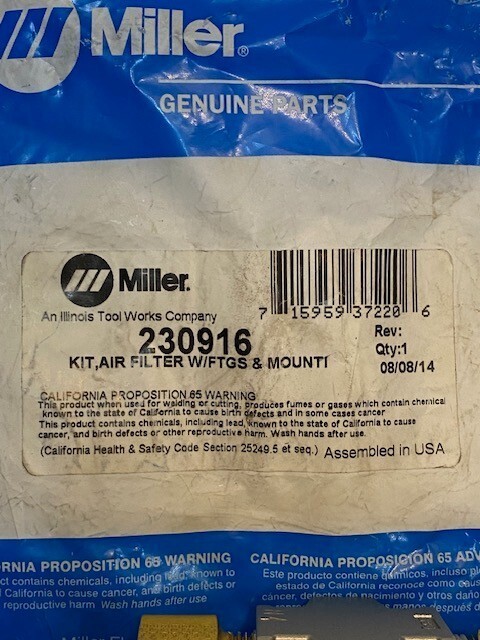 Miller 230916 Kit Air Filter w/ Fitting Mounting Bracket