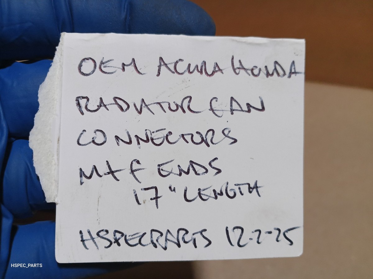 GOOD USED CONDITION. 17" TOTAL LENGTH. MALE AND FEMALE RADIATOR COOLING FAN CONNECTORS. OEM PARTS. FITS MOST 92+ HONDA AND ACURA COOLING FANS. FROM A 2001 CRV. SHIPS USPS WITHIN A BUSINESS DAY OF PAYMENT.