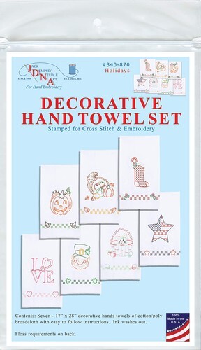 Jack Dempsey Needle Art Faith and Hope, Peace and Love Decorative Hand Towels. Hand Towels Faith and Hope. Stamped for Cross-Stitch and Embroidery. Package contains two matching - 17 inch x 28 inch decorative hand towels. Made of cotton/poly broadcloth, with easy to follow instructions. Ink washes out. 100 Percent made in the U.S.A. Item Number: 320-825. CHK-320-825