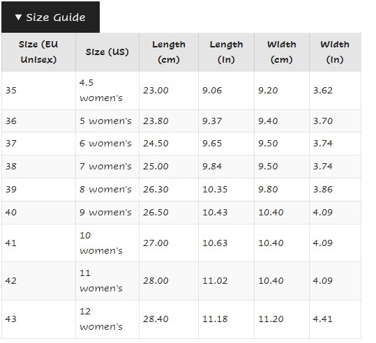 | EUR Shoe Sizes: |