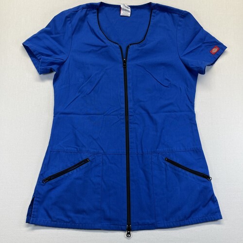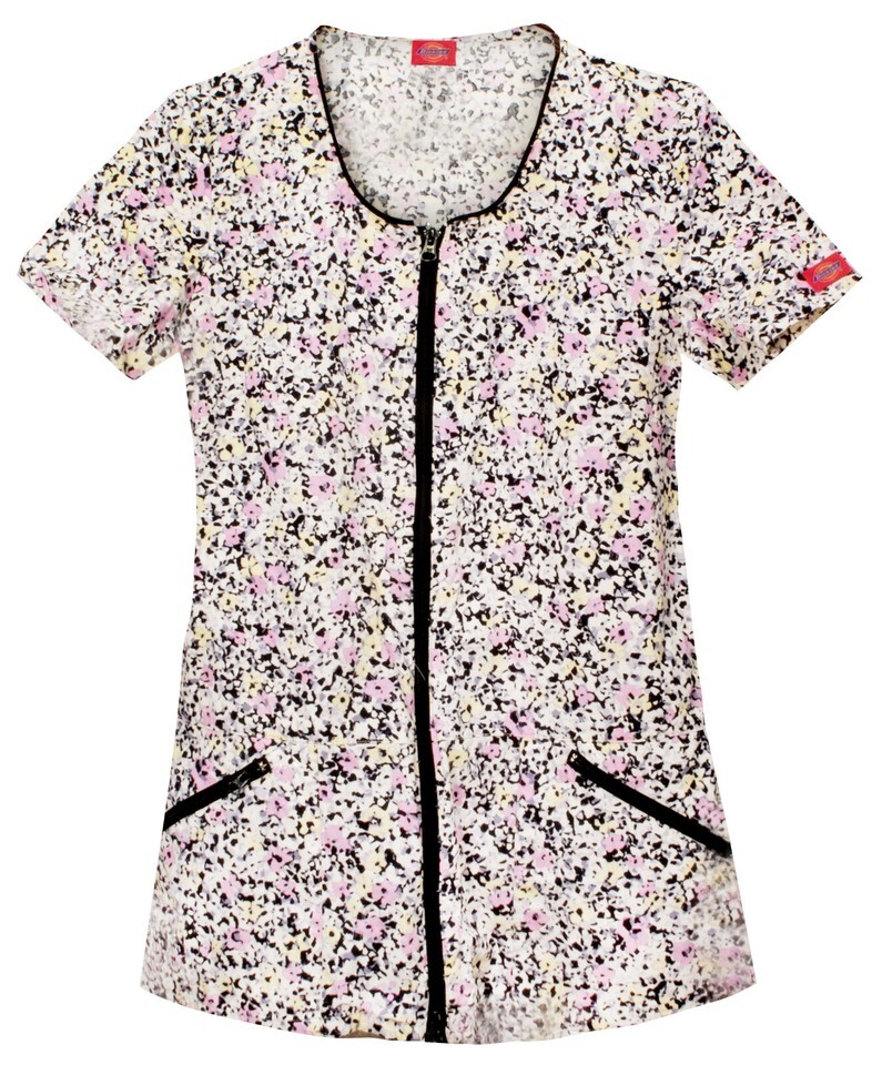DICKIES WOMEN SCRUB TOP 82743 SMALL SPECKLES POSIES S ZIP DOWN TUNIC COTTON