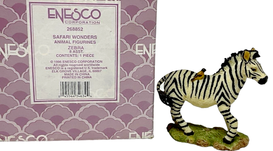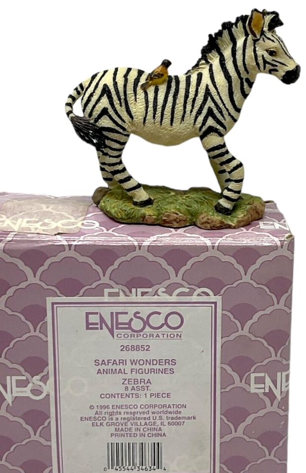 1996 Enesco Zebra Figurine “Safari Wonders” #268852 Resin Animal Collectible 3"
